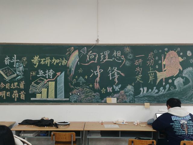 针对考研自习室这一核心备考阵地,学院细致开展保障工作:全面检查并维护自习室吊灯,确保照明充足;逐一排查桌椅稳固情况,及时修缮损坏设施,为学子提供舒适安全的学习环境;同时在自习室内添置饮水机,解决学子饮水需求,让大家无需分心即可专注备考。此外,学院组织25级新生绘制考研主题黑板报,励志话语、备考小贴士与暖心祝福相映成趣,让自习室洋溢着温馨而浓厚的冲刺氛围。